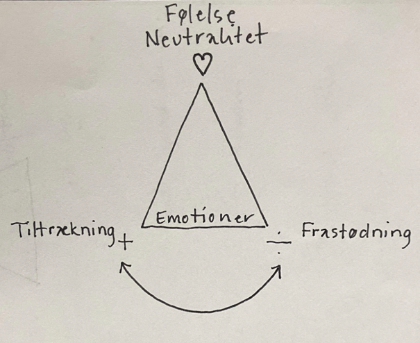 Emotioner svinger på en polaritetsakse mellem plus og minus og opererer med: